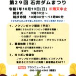 - 第29回石井ダムまつり(2025年10月19日)2025年10月19日(日曜日)9時30分から13時まで、第29回石井ダムまつりが開催されます。 ノウリンピッ… 続きを読む: 第29回石井ダムまつり(2025年10月19日)