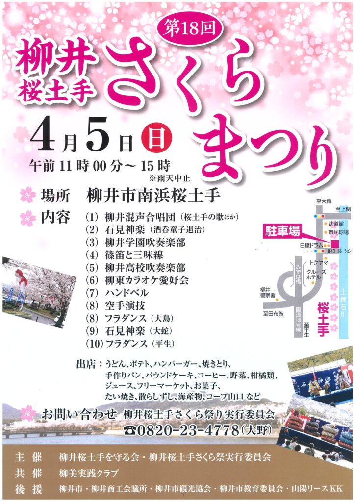 お問い合わせは、柳井桜土手さくら祭り実行委員会 0820-23-4778(大野)まで。