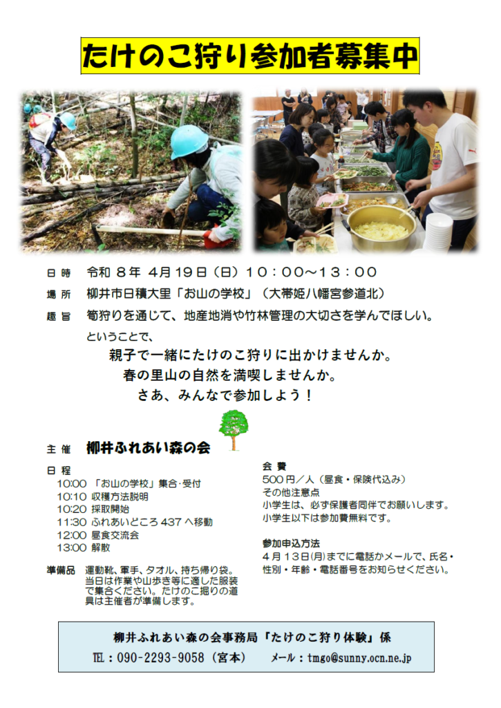 柳井ふれあい森の会事務局『たけのこ狩り体験』係