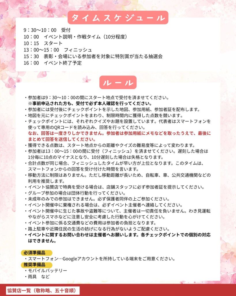 春を彩る花と苺のまちめぐり 花さんぽロゲイニング(2026年3月22日)
