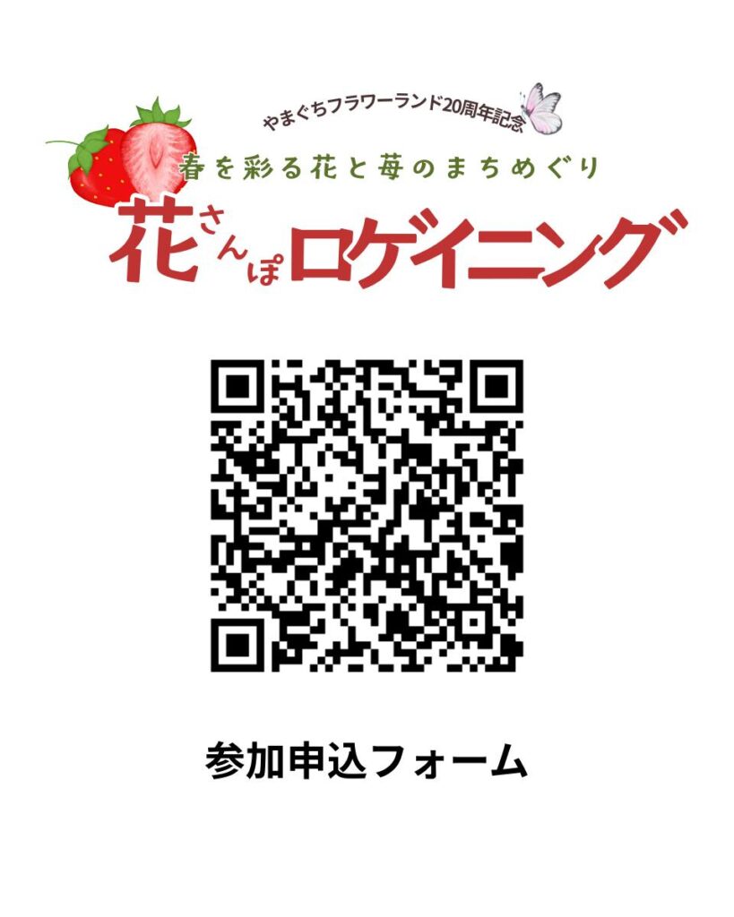 2026年3月22日(日曜日)10時から16時まで、やまぐちフラワーランド20周年記念イベント「春を彩る花と苺のまちめぐり 花さんぽロゲイニング」を開催します。